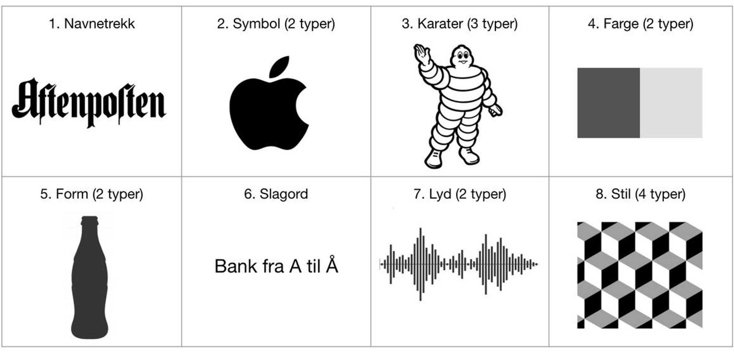 - Valg av elementer basert på fire kriterier: 1) Lett å legge merke til og huske 2) Tilpasningsdyktig 3) Fortrinnsvis lar seg varemerkeregistere 4) Styrker posisjon og personlighet.