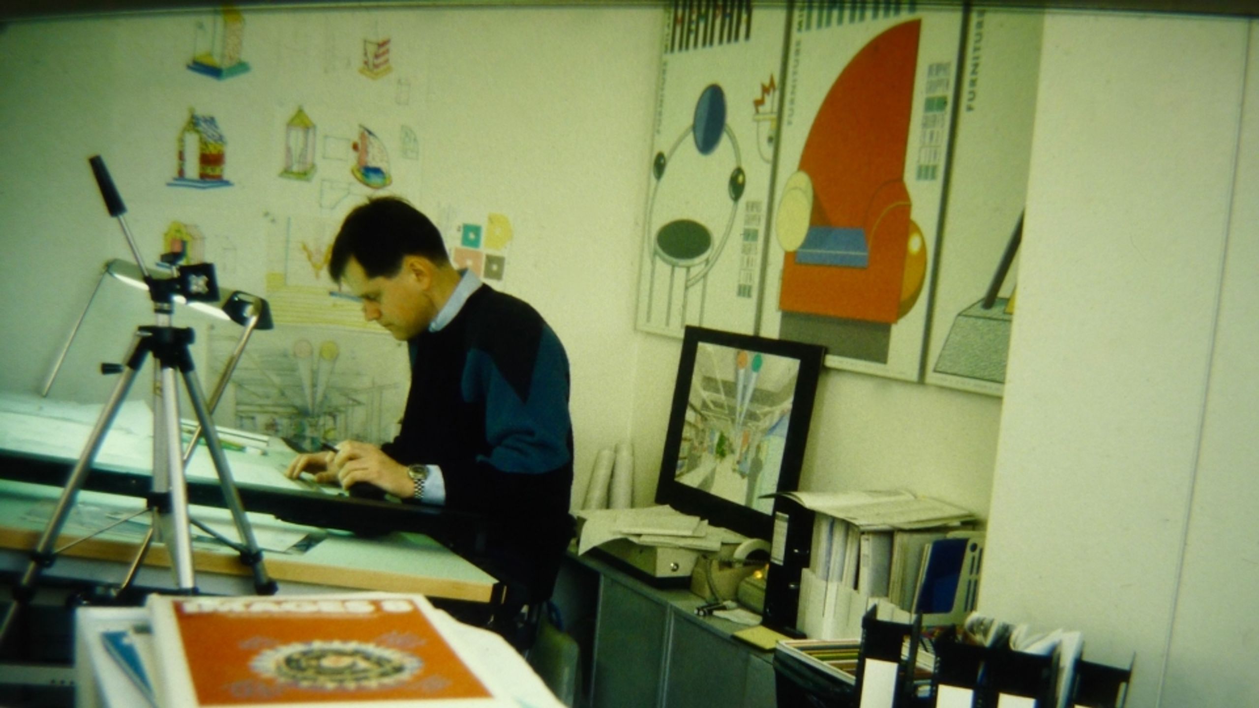 Første arkitekten vi ansatte var Jon B. Ofstad her i vårt studio i Munkedamsveien med skisser til Panama på veggen. Foto Art Aid