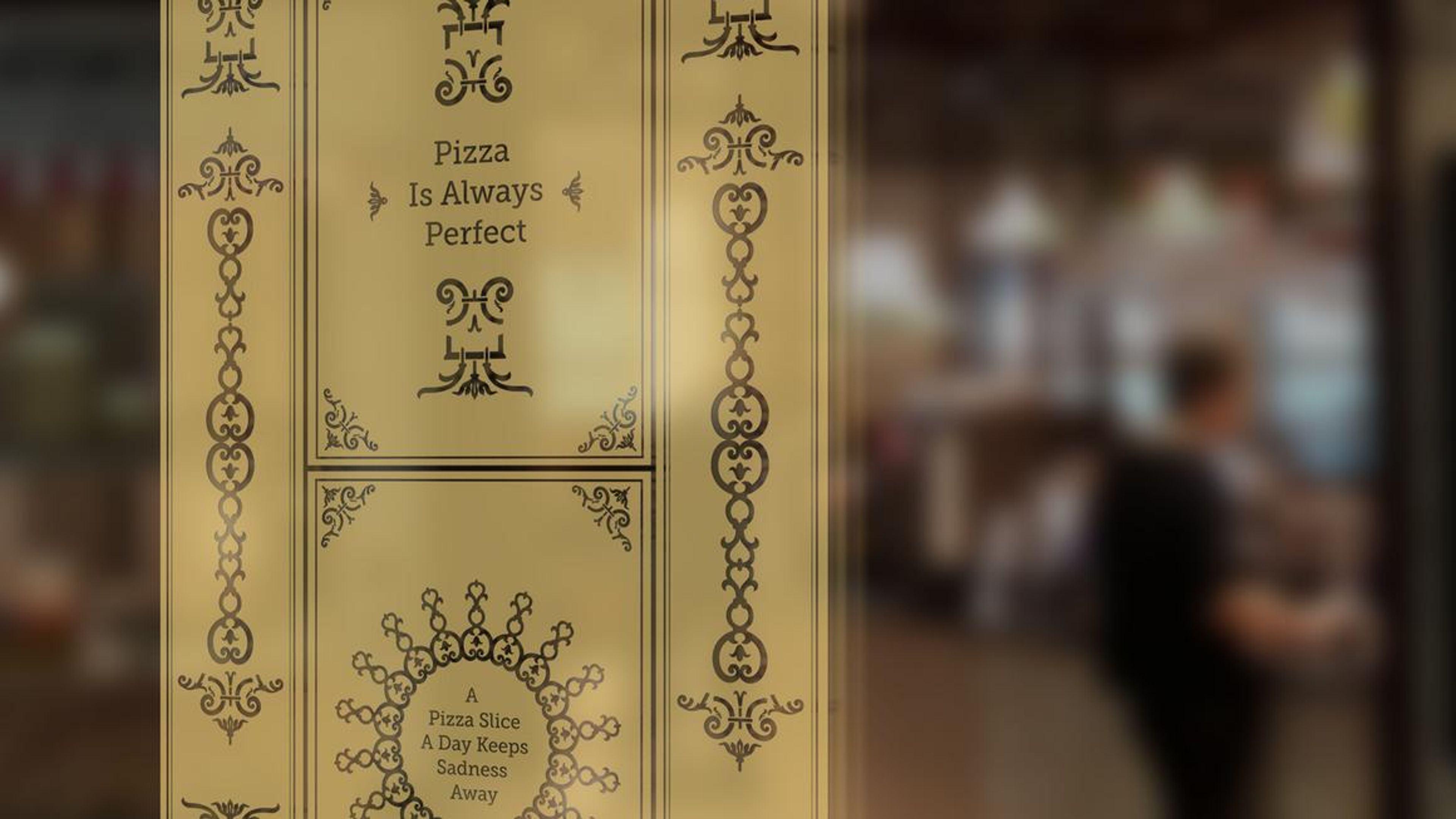 De stripete markisene i rødt og hvitt brukes som fjernsignaler for å dekode hvor maten har sitt opphav og for å skape følelsen av å gå inn i en italiensk familierestaurant. En variert materialpalett, med italiensk marmor, hvite fliser og rustikt treverk understreker den typiske stilen fra det folkelige italienske.