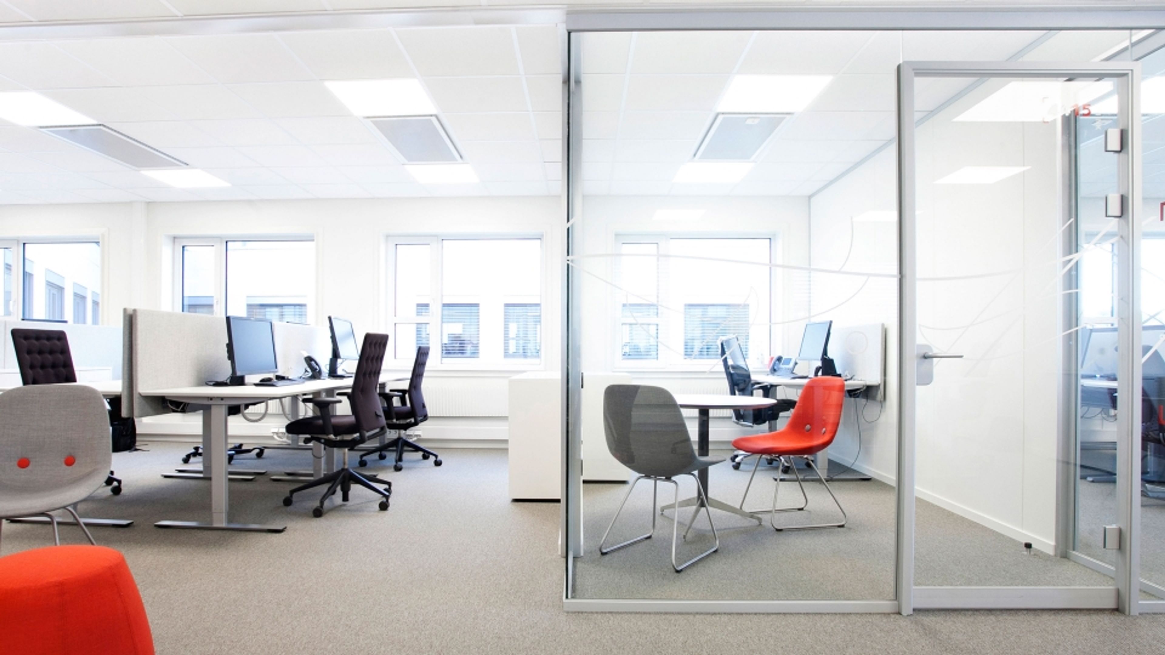 I tillegg til et skiltsystem for rom og en sikkerhetsmarkering av glassflater ble det utviklet et konsept for markering og skjerming av møteområder, workshoprom og stillerom.