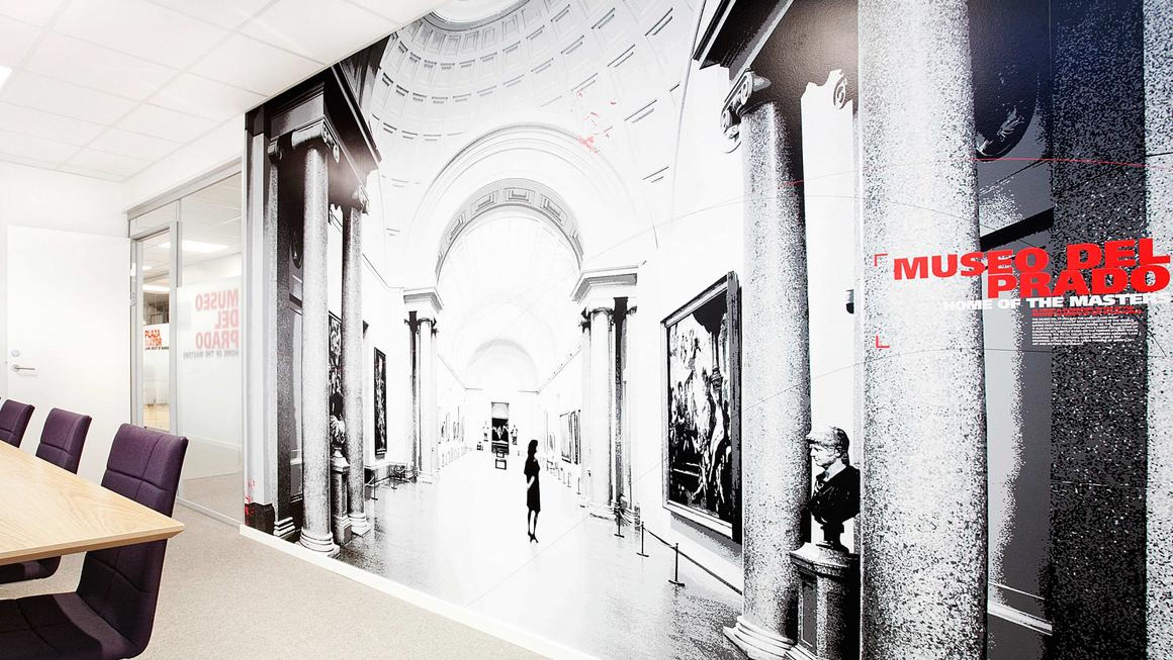 Santanders tilstedeværelse i verden er fortalt gjennom store bilder og tekst. I workshoprom ble pulsen hevet gjennom store mantraer og inspirerende bruk av grafikk. Stillerom er diskret markert gjennom et nyutviklet grafisk element. Designspråket som er brukt er utviklet av Grid Design for Santander.