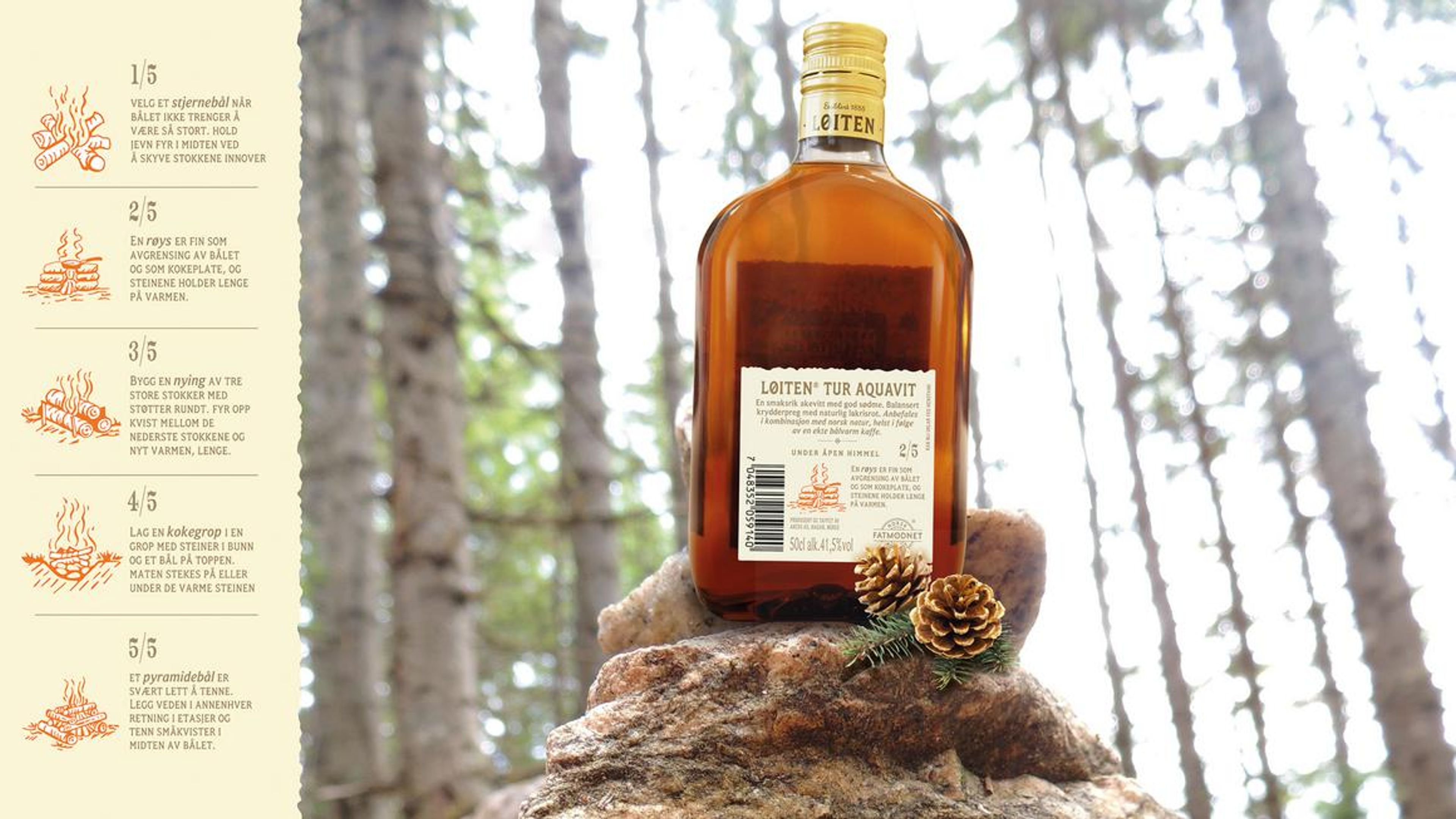 Arcus ønsket å utvide Løiten-aquavitenes nedslagsfelt. Den nye varianten skulle ha navn og identitet som er relevant for nytt kundesegment og situasjon; på tur i skog og mark, ved bålet med gode venner, i hytteveggen. Dette er en ny Løiten-situasjon som vil utvide kundeperspektivet betydelig.