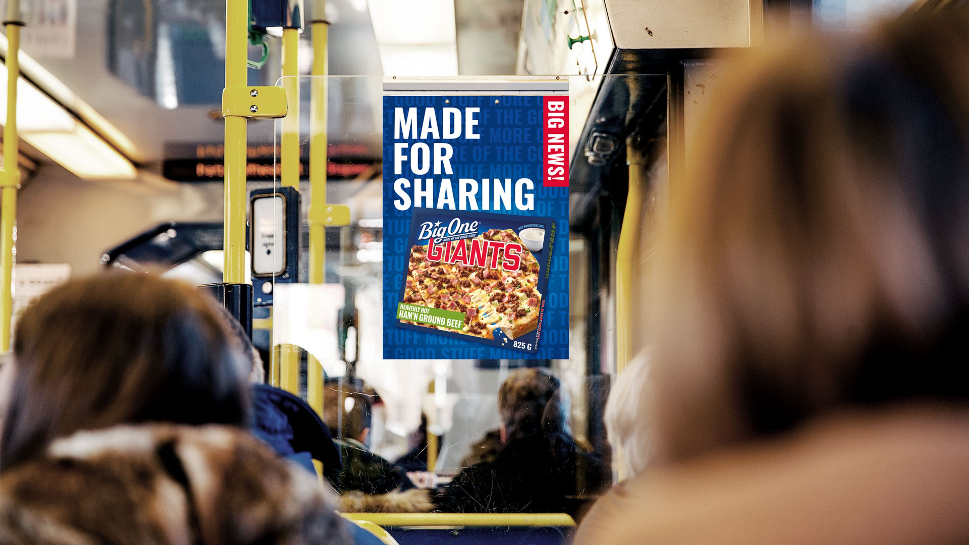 Seriens egennavn ble sentralt for å underbygge størrelse. Men det måtte samtidig være i tråd med BigOnes amerikanske opphav og tone of voice. Vår anbefaling ble “BigOne Giants” – et navn som gjør at man umiddelbart tenker at det er en stor pizza.