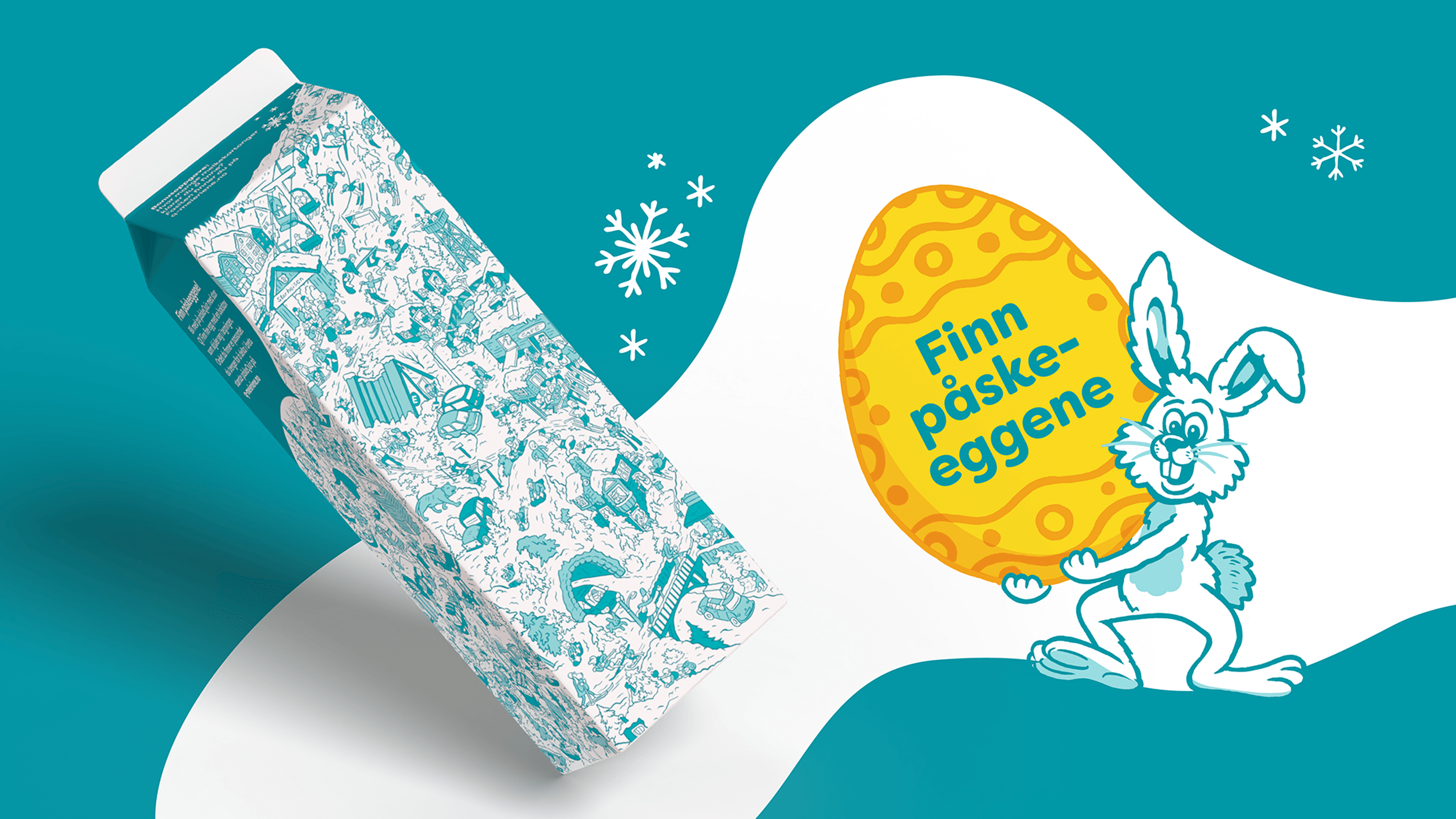 I tråd med nytt design for melk og matlagingsprodukter, beholder kartongen den fargede bølgen bak logoen. For å videreutvikle den populære påskejakten og ytterligere øke engasjementet, gjorde vi to hovedgrep: