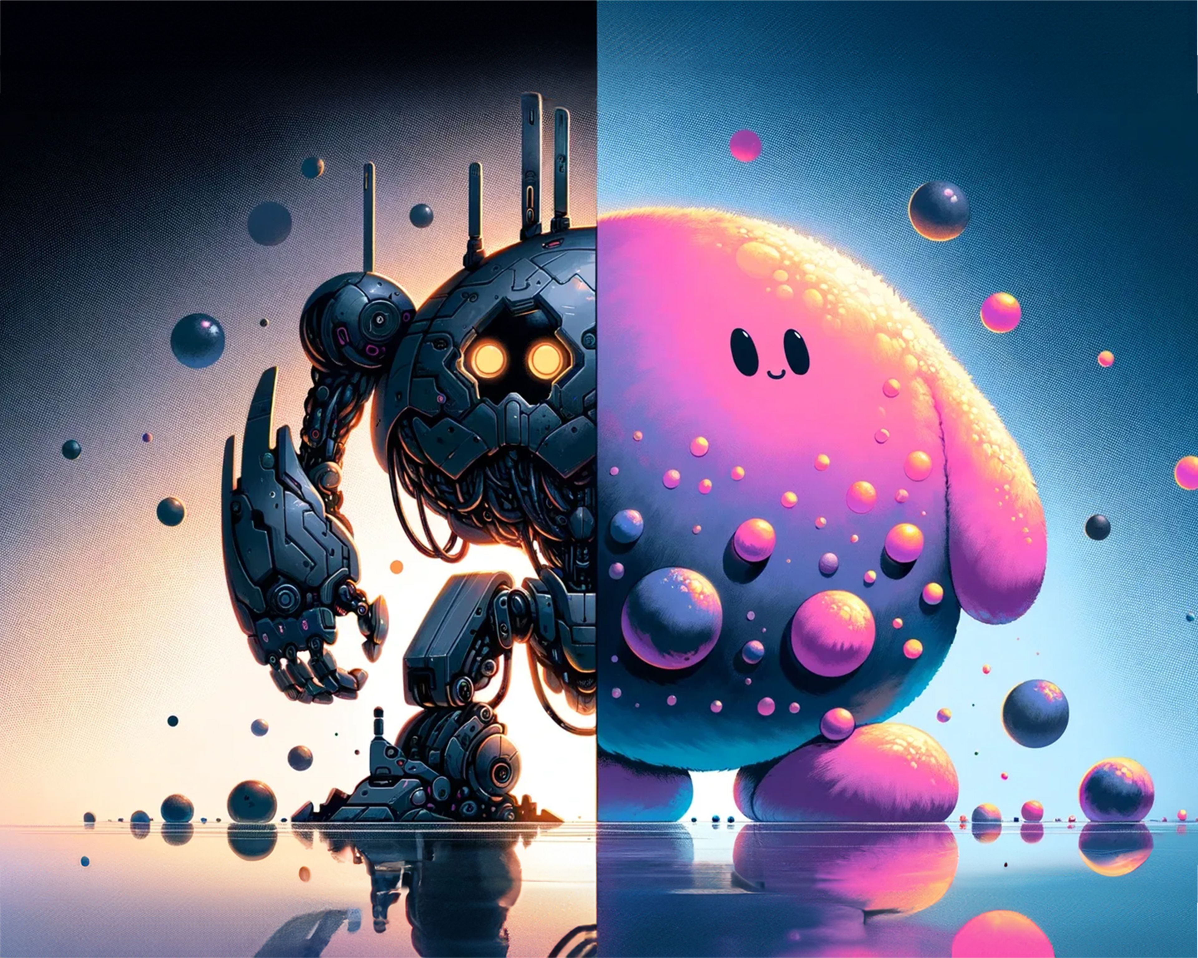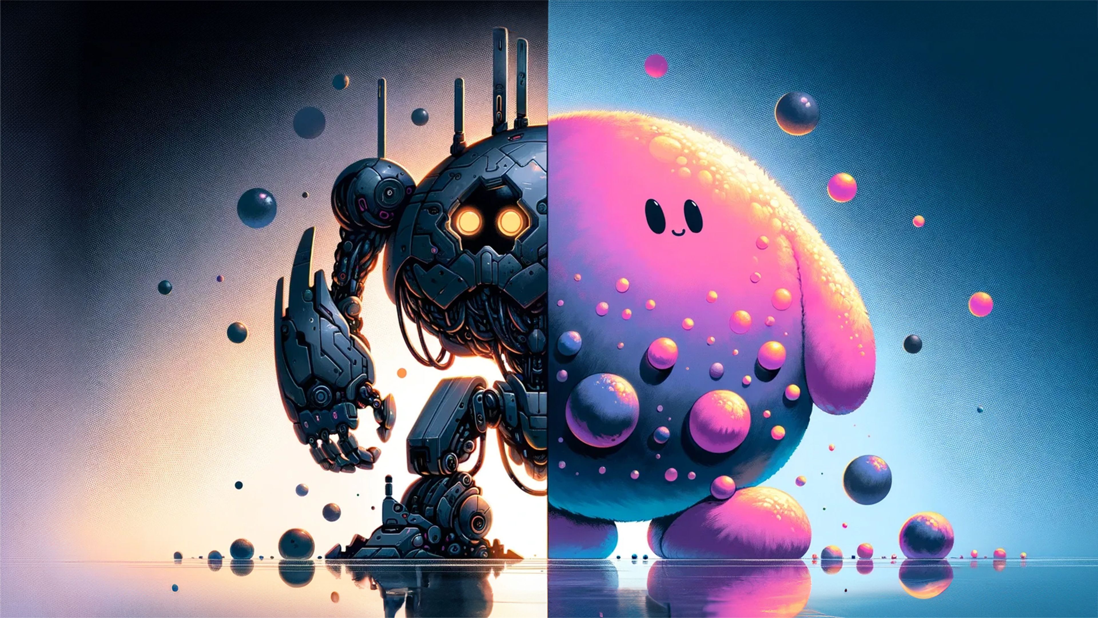 Prompt toppbildet: Lag en futuristisk illustrasjon av kiki og bouba. Bildet som vises i sosiale medier er også illustrert av DALL-E.