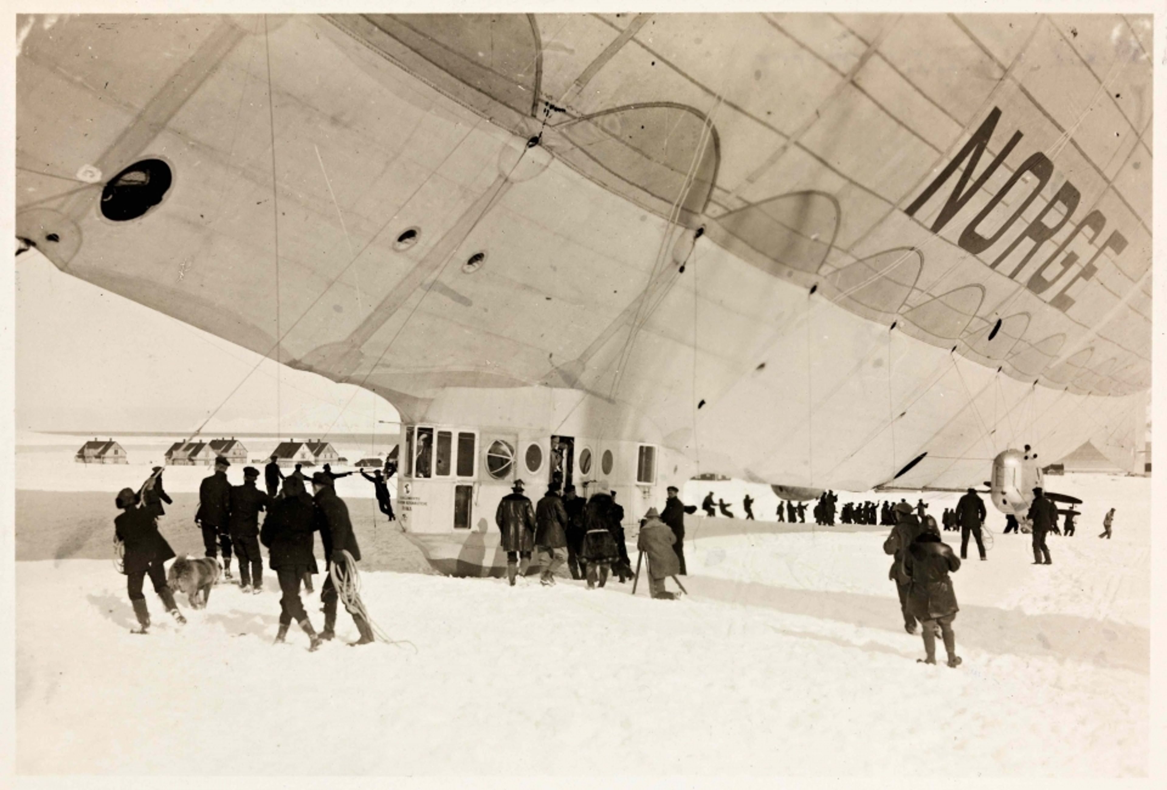 Toppbildet: «Norge» like før avreise fra Ny-Ålesund på Svalbard 11. mai 1926. Roald Amundsen står i døra på gondolen. Foto: Nasjonalbiblioteket
