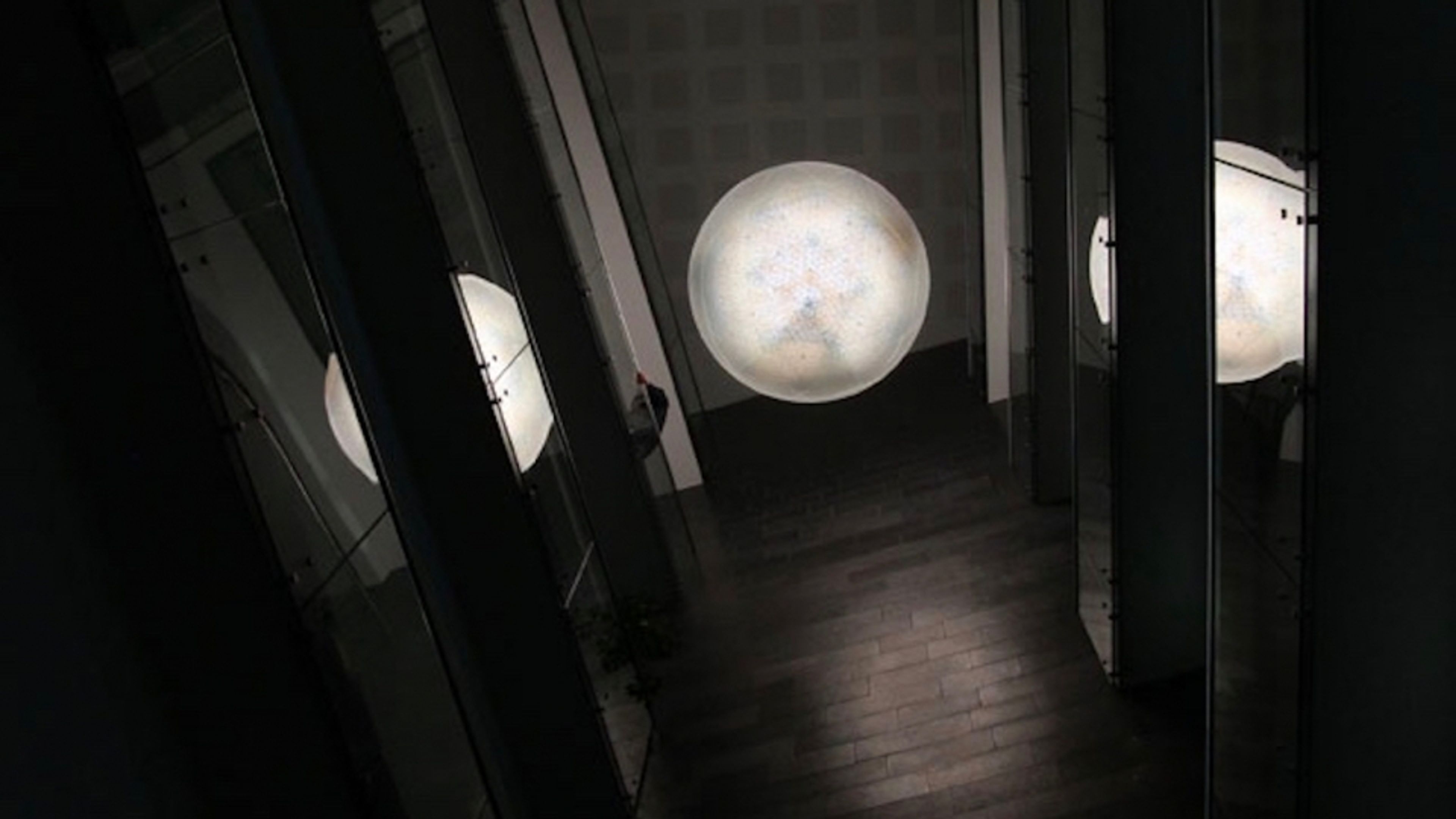 Diameteren på sfæren er 1,8m, og skifter lystemperatur (varm- og kaldhvit) lik solens overflate samtidig som den beveger seg sakte opp og ned i bygget. Lyssensorer gjør at allmennbelysningen justeres i takt med bevegelsen. Det var et komplisert og gøy prosjekt sier Anders. Se film under.