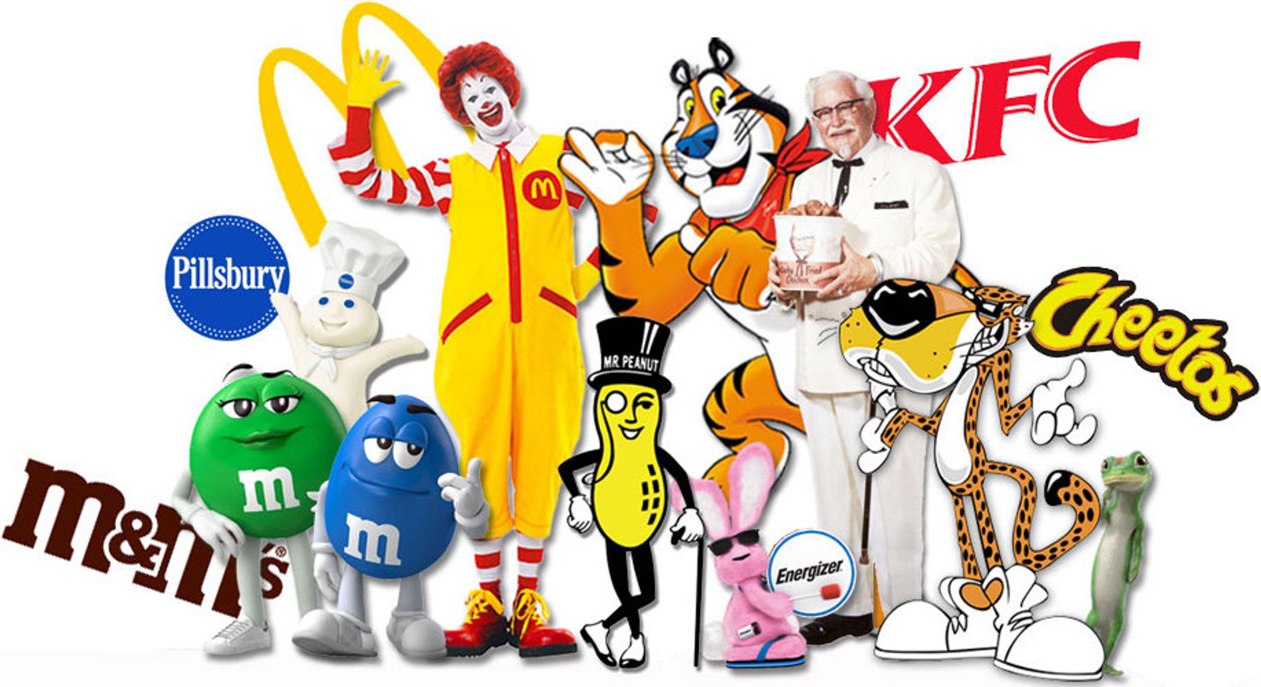 Men når man får tenkt seg litt om kommer man jo på mange flere: Duracell-kaninen, Colonel Sanders fra Kentucky Fried Chicken, Coca Cola-nissen, M&M’s-figurene, bartemannen på Pringles-røret, Michelin-mannen, Polly peanøtter, og den grønne kjempen til Green Giant. For å nevne noen.