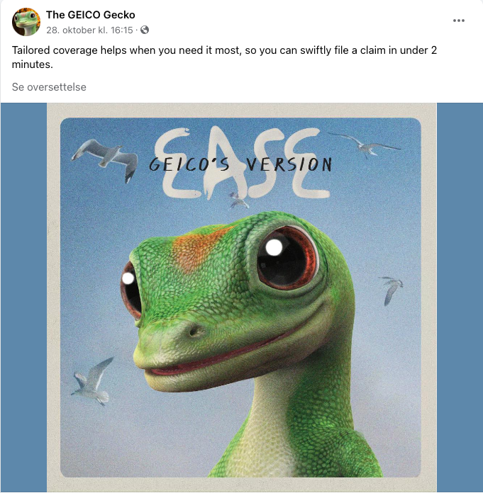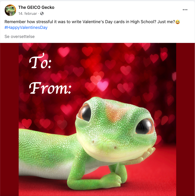 Man kan faktisk bli så glad i en merkekmasot at man velger å følge dennes profiler på Facebook, Instagram, TikTok eller X. Som for eksempel The GEICO Gecko.