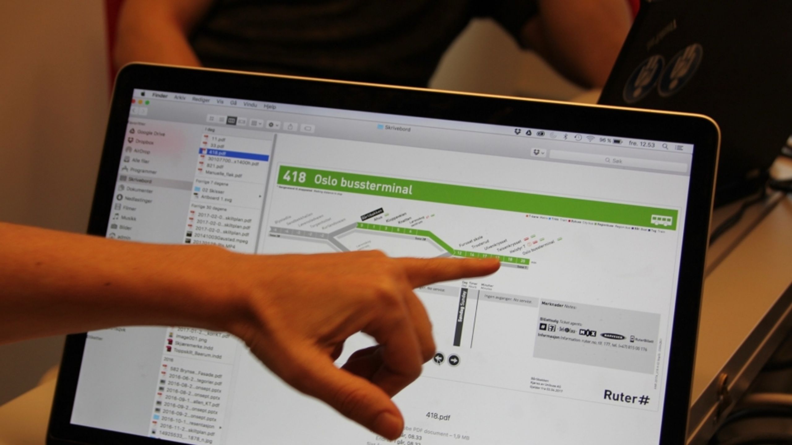 Ruter er en av byråets største oppdragsgivere og jeg har avtale med design manager Christian Nordström. Vi skal snakke om stoppestedstabeller.