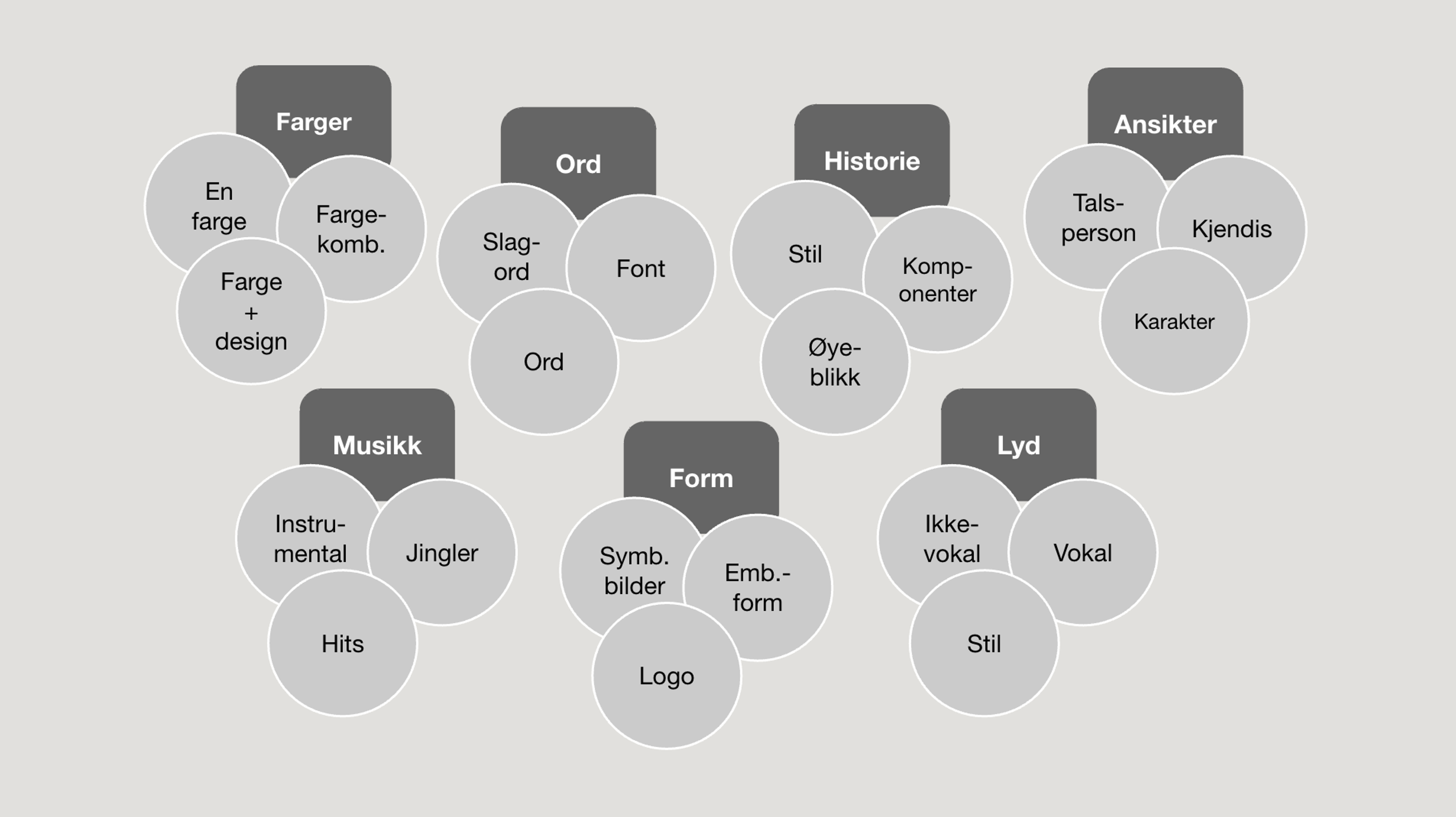 NB: Lesere som har fulgt artikkelserien vet at Grid benytter en annen inndeling enn den som her presenteres i boken. Vi opererer med åtte hovedkategorier merkeelementer. Den viktigste forskjellen ligger i terminologien. For å kunne formidle Romaniuks resonnementer, tester og innsikter i de kommende kapitlene – om elementenes egenskaper og effekt – så presist som mulig, bruker vi bokens begreper og kommer med klargjørende kommentarer der det er relevant.